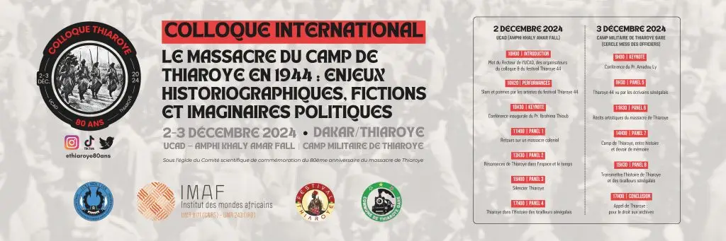 🗓️ December 2-3, 2024 📍 Dakar/Thiaroye Unique academic and cultural event focusing on historiographical challenges, fictional narratives, and political imaginaries surrounding the Thiaroye massacre. This conference will bring together scholars, writers, and political actors to explore the many dimensions of this tragic historical event. 📄 The full program is available here 📌 Don’t miss this opportunity to deepen your knowledge and participate in thought-provoking discussions. 👉 Share this event and invite your networks to engage in this key moment of collective reflection and memory.