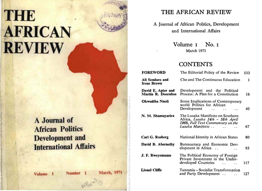Figure 1: The African Review 1971, volume 1, numéro 1 (couverture et contenu).
