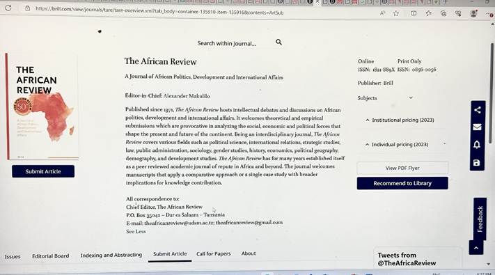 Makulilo, A., & Henry, R. (2024). From “Dar-es-Salaam” to “Brill”: Beyond the North-South Polarity in Publishing Scientific Journals. The African Review, 51(1-2), 1-20.