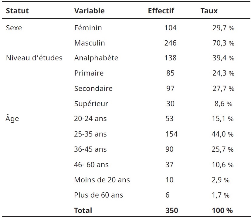 Les caractéristiques sociodémographiques des enquêtés sont dans Tableau 1 :
