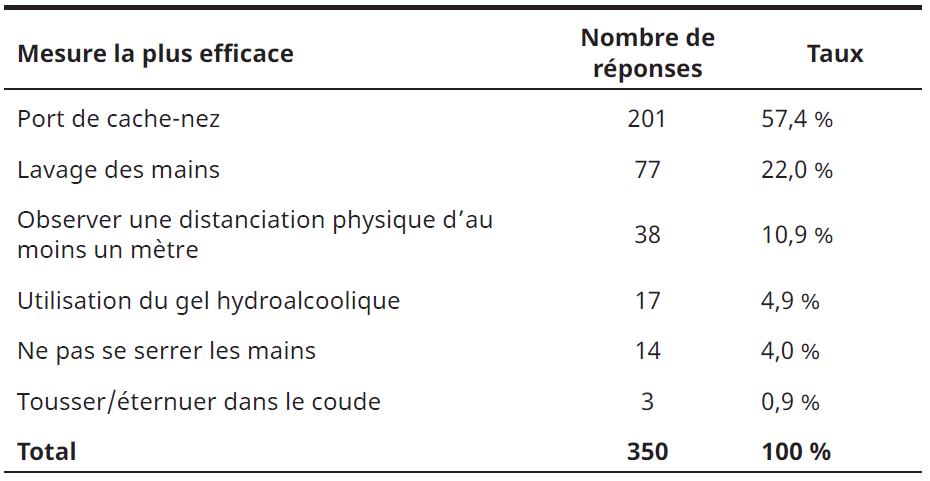 Tableau 6 : La mesure de prévention la plus efficace contre la Covid-19